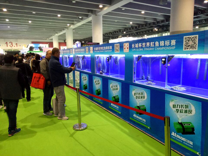 长城杯世界魟鱼锦标赛 / 2016.3.18至20 / 广州琶洲 由“长城展览”联手“中国渔业协会”共同主办,并由50多家行业协会与俱乐部共同参与的“长城杯-世界观赏鱼锦标赛”于2016年11月10-13日,在“中国国际宠物水族用品展”上开赛。 这是中国乃至全球,首次10场赛事同期上演的水族盛事。从现场参赛的鱼品种、品质、数量,到技术团队,器材供应,评委阵容,赛事奖金都为水族活体赛事树立了一个新标杆。 其中,参赛魟鱼达到80缸,黑白魟、金点魟、珍珠魟,甚至罕见的白子都齐集会场,让广大鱼友大饱眼福。同时也是一次中国渔场、经销商、鱼友、器材商、专家的大聚会。